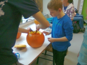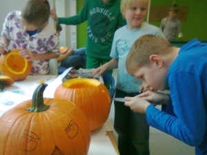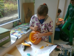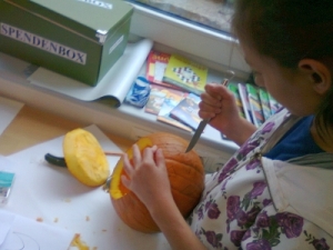 In diesem Jahr wurde im Schulclub für Halloween gebastelt. Schüler waren eingeladen, Kürbisse zu schnitzen, Spinnen aus Styropor und Basteldraht herzustellen und sich eine schaurige Maske zu kreieren. Einige nutzten das Angebot und konnten sich ihre Arbeiten mit nach Hause nehmen.