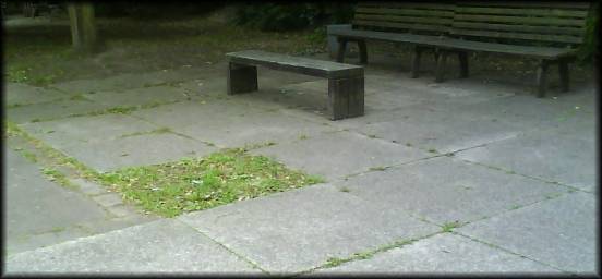 Fast alle WOG Insider kennen diesen Platz!? Hier stand der legendäre Tisch, an dem so manche Freistunde mit Freunden verbracht wurde. Aber nur wenigen ganz aufmerksamen Ostwaldianern entging nicht die Disharmonie in der Verlegung der riesigen Betonplatten.