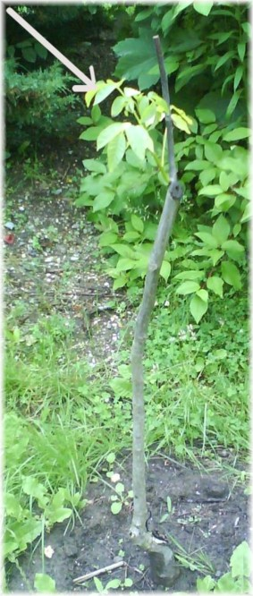 An einem der letzten Tage des Schuljahres 1992/93 legten die Abiturienten genau HIER Hand an, oder besser gesagt, das Brecheisen. In einer Nacht- und Morgennebelaktion hebelten sie eine Platte aus dem Verbund, füllten die Leerstelle mit nährstoffreichster Gartenerde und pflanzten einen Walnussbaum (Juglans regia,) der über Jahre von den Taten jener Absolventen und ihrer Zeit am WOG künden sollte.