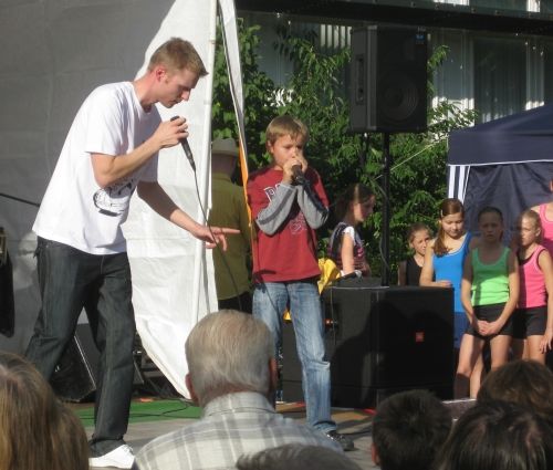 Das diesjährige Stadtteilfest in Lößnig fand bereits zum 6. Mal statt. Das schöne Wetter sowie das farbenfrohe Programm lockten viele Lößniger zu einem Besuch auf das Gelände der Lene-Vogt-Mittelschule. Herr Prof. Fabian, Schirmherr des Festes, informierte sich in einer Gesprächsrunde mit Herrn Loibl und Frau Gutsche (SL der MS) über gemeinsame Vorhaben und die Zusammenarbeit der beiden Schulen. Herr Böhm, Baustellenleiter, gab wissbegierigen Anwohnern gern Auskunft über "Ostwalds" Passivenergiehaus.