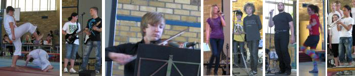 Unser Dank geht an alle Künstler, die Mitglieder und Leiter der Arbeitsgemeinschaften Chor, Karate, Zirkus, Schulband, die vielen Helfer an den Ständen für das leibliche Wohl, das Team Bratwurst, die Technik, die Jury und und und ....