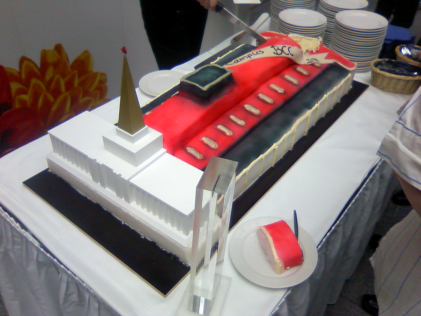 Am Ende der Veranstaltung kam es zum Anschnitt eines lukullischen Bauwerks der besonderen Art. (siehe Foto)