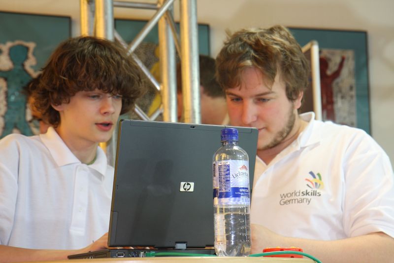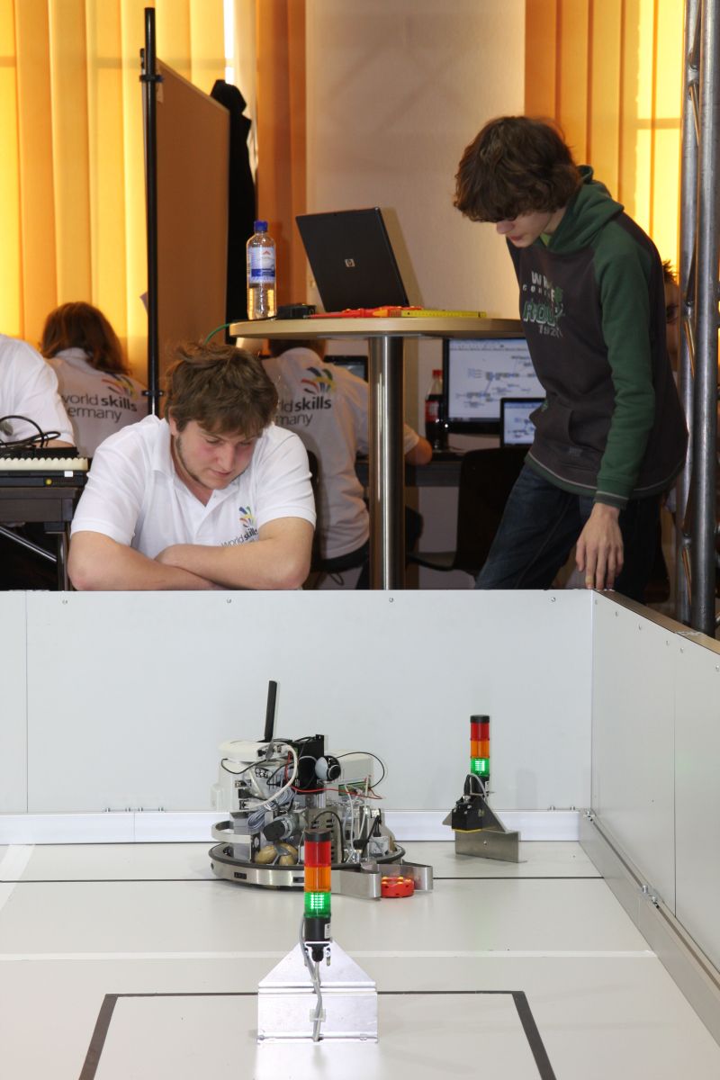 könnte das Event überschrieben sein, zu dem sich vom 14.01-18.01.2013 in Erfurt junge Technikbegeisterte und ihre Betreuer trafen. Deutschlands beste Azubis, Berufsschüler, Jungfacharbeiter, Gymnasiasten und Studenten zeigten über drei Tage im WorldSkills Germany-Berufswettbewerb „Mobile Robotik“ ihr Können. Insgesamt 14 Teams - darunter als Gast eines aus Österreich waren am Start. Die Finalteams kamen aus Pfaffenhofen, Osnabrück, Erfurt, Goslar sowie Leipzig. Unsere Schule war durch Markus Koenigsdorff, Tobias Schneider und Benedikt Wegner vertreten.