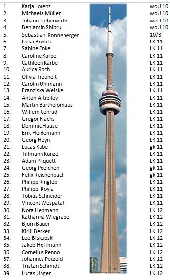 Folgende Competitors wurden für den diesjährigen Torontowettbewerb registriert:
