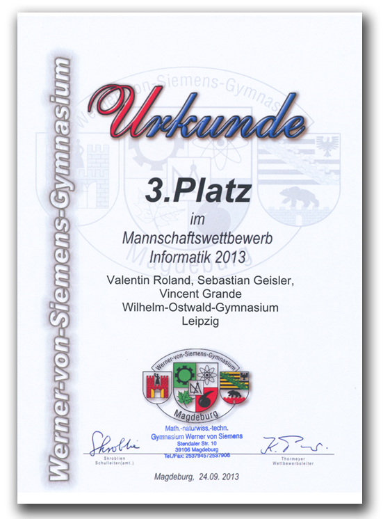 Diesjährig war das Siemensgymnasium aus Magdeburg auf dem obersten Treppchen. Platz 2 belegte die Mannschaft aus Jena.