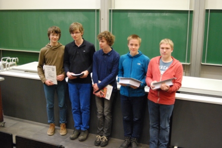 Marina (als einziges Mädchen, das sich zutraute mitzufahren), Jonas und Luca belegten gute Plätze im Mittelfeld der Teilnehmer. Die Teilnehmer mit den Plätzen 1 bis 6 der Klassenstufen 9 und 10 treten dann im Juni gegen die erfolgreichen Schüler der Länder Thüringen und Sachsen-Anhalt an.