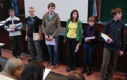 Immer wieder im März treffen sich 12 Schüler für die Teilnahme an der 2. Runde Chemie die stimmt. Die Reise führt uns dabei an die TU Dresden. Auch in diesem Jahr waren jeweils 6 Vertreter aus der Klasse 9 und 10 am Start. Nach der 2 1/2 stündigen Klausur und einem Experimentalvortrag zur Luft waren alle gespannt auf die Ergebnisse, auch die begleitenden Lehrer. Nun stehen die jeweils besten 6 Teilnehmer für die 3. Runde an der FH Merseburg (9. - 12. Juni) fest.