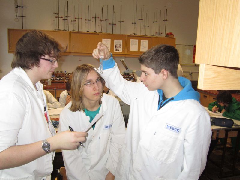Am Samstag begann der Tag bereits 7.30 Uhr mit dem praktischen Teil des Wettbewerbs. Noch ein wenig verschlafen ging es an Fällungsreaktionen und die damit verbundene Identifizierung von unbekannten Verbindungen.