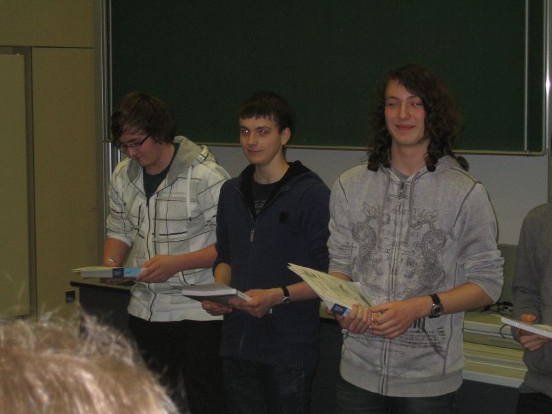Die jeweils 30 Besten der Jahrgangsstufe haben sich sachsenweit für die zweite Runde qualifiziert. Diese fand am 10. März 2011 an der Technichen Universität Dresden statt. Von unserem Gymnasium war eine Mannschaft aus 18 Jungchemikern beteiligt, die sich einer zweieinhalbstündigen Klausur, bei der als Hilfsmittel ein Periodensystem und ein Taschenrechner zugelassen war, stellten.