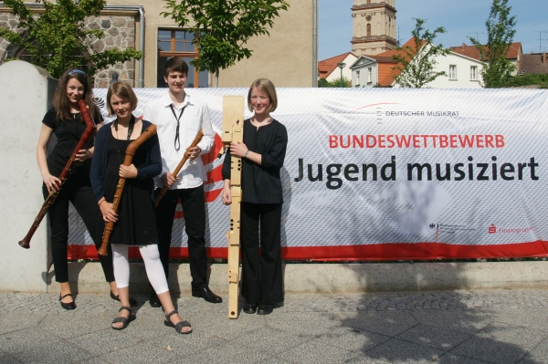 Im Wettstreit mit vielen anderen jungen Musikern aus ganz Deutschland erspielten sie sich einen 2. Bundespreis und nutzten den Aufenthalt auch zum Besuch interessanter Workshops und zum Erfahrungsaustausch. Besonders interessant war es, die eigene Instrumentengruppe, aber auch ganz andere Instrumentalisten mit Ihren Wettbewerbsbeiträgen zu hören – z.B. Drum-Set & Percussion, E-Gitarre. Aus Sicht der Anderen ruft z.B. eine Subbass-Flöte großes Erstaunen hervor! Nicht jeder kennt die großen Instrumente, die zur Familie der Blockflöten gehören und für den vollen, tiefen Klang barocker und auch moderner Musik verantwortlich sind.
