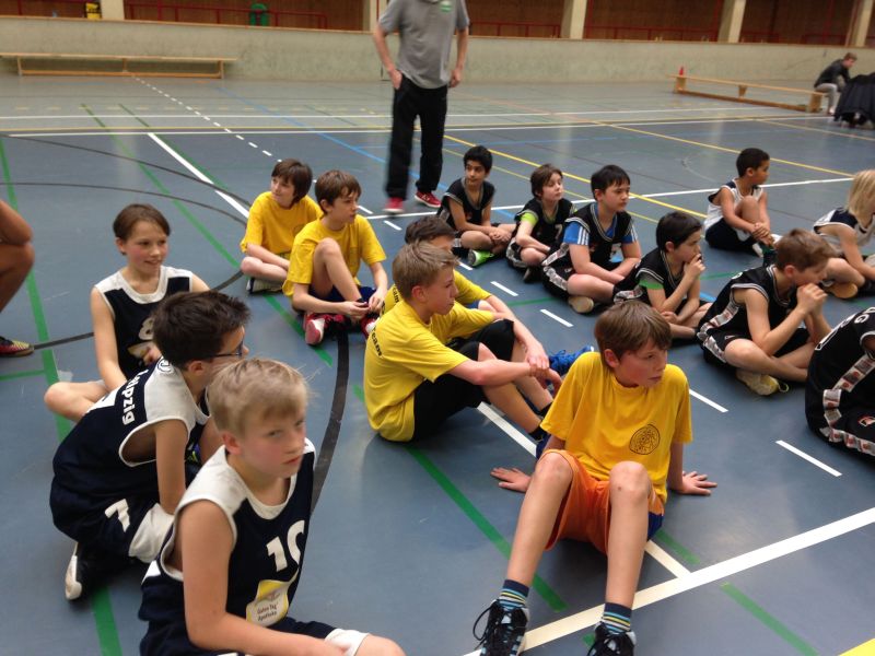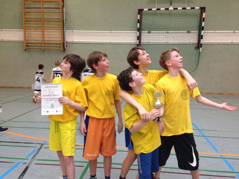 Am 24.02.2016 fand das Stadtfinale der 5. und 6. Klassen (Wettkampfklasse IV) im Engelsdorfer Gymnasium statt. Es traten sieben Mannschaften an und es wurde in zwei Staffeln gespielt. Das WOG - Team erreichte in seiner Staffel (Reclam II, Engelsdorf I, 16. Oberschule) den ersten Platz. Nun mussten die Jungs gegen den Zweitplatzierten der anderen Staffel, Reclam I, antreten ... und gewannen. Im Finale gegen das Kantgymnasium wurde es richtig spannend: den ersten Teil der 10 minütigen Spielzeit lagen wir bis zu zwei Körbe hinter dem Kantgymnasium. Doch die Jungs blieben konzentriert und nervenstark und probierten weiterhin ihre vorher überlegte Taktik umzusetzen. Mit den letzten Sekunden hatten wir das Spiel zu unseren Gunsten entschieden.