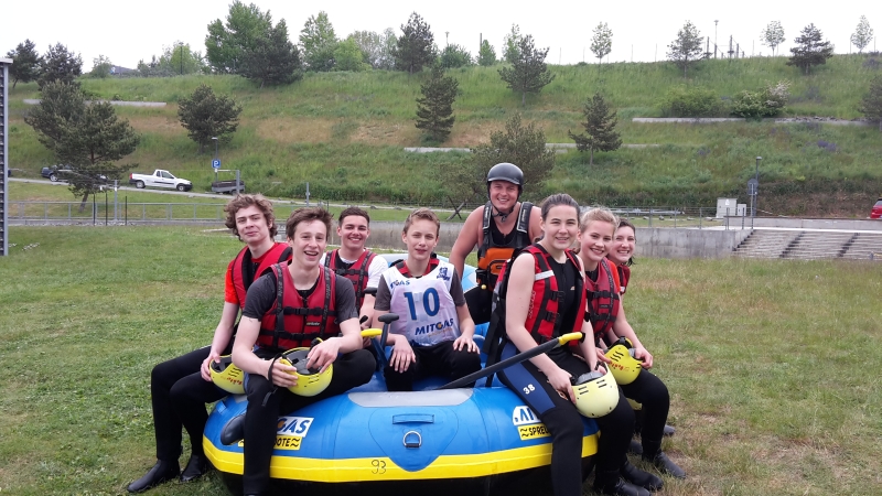 Nachdem wir uns in der Vorrunde im Mai für das diesjährige Finale des Schüler- Raftings im Kanupark Markkleeberg qualifiziert hatten, packte uns der Ehrgeiz und wir wollten natürlich im Finale das i-Tüpfelchen setzen. Unser Team bestand aus 3 Mädchen und 4 Jungen der Klassen 9/1 und 9/3 und einem Rafting-Guide des Kanuparks.
