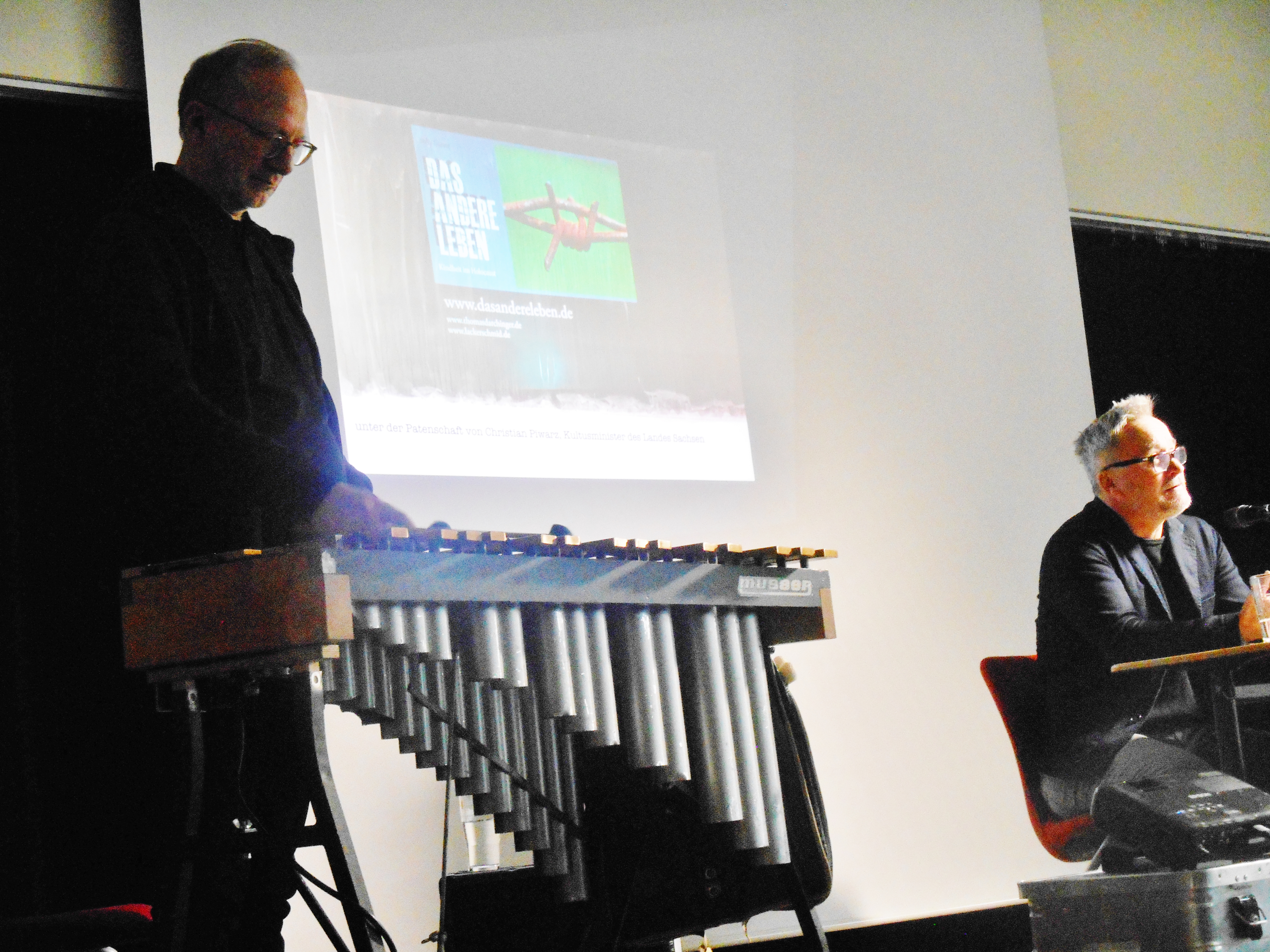 Der Schauspieler Darchinger liest aus der Autobiographie von Solly Ganor: „Das andere Leben – Kindheit im Holocaust“. Solly ist 13 Jahre alt, als seine wohl behütete Kindheit in Litauen durch den Einfall der Wehrmacht jäh zu Ende geht und er am eigenen Leib erfahren muss, was die Nazis unter „Vernichtung durch Arbeit“ verstanden. Der Junge durchlebt und überlebt in mehreren Konzentrationslagern und auf dem Todesmarsch am Ende des Krieges die Hölle. Darchinger liest die Szenen sehr ergreifend und eindrucksvoll. Seine Worte werden einfühlsam durch die Musik am Vibraphon begleitet – Klänge, welche die Stimmung im Saal aufnehmen und musikalisch umsetzen.
