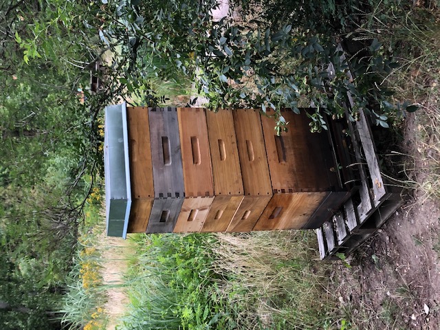Es ist März 2020, der Frühling nimmt so richtig Fahrt auf. Es blüht überall und die Bienen sind bereits unterwegs zu ihren ersten Flügen, um Nektar zu sammeln. Jetzt geht die Arbeit an den Bienenvölkern für unsere Jungimker im GTA richtig los: Honigräume müssen aufgesetzt werden, die Völker müssen regelmäßig auf Schwarmstimmung untersucht werden, Honig kann geerntet, geschleudert und schließlich abgefüllt werden. ABER Corona kommt und die Schule ist zu. GTAs finden bis zum Ende des Schuljahres nicht statt. GTA online? Naja, Bienen fliegen nicht in Lernsax, aber unser Imker Herr Dr. Hardt hat sich ganz toll um unsere Schulbienen gekümmert und die Jungimker mit Fotos auf dem Laufenden gehalten. Das Ergebnis können alle draußen im Biotop bewundern, denn unser Volk 1 ist so stark, dass es 5 Honigräume zum Sammeln drauf hat UND alle können es jetzt schmecken: Es gibt unseren Frühlingshonig im Foyer bei Johann für 3 € das 250g-Glas zu kaufen. So lange der Vorrat reicht…