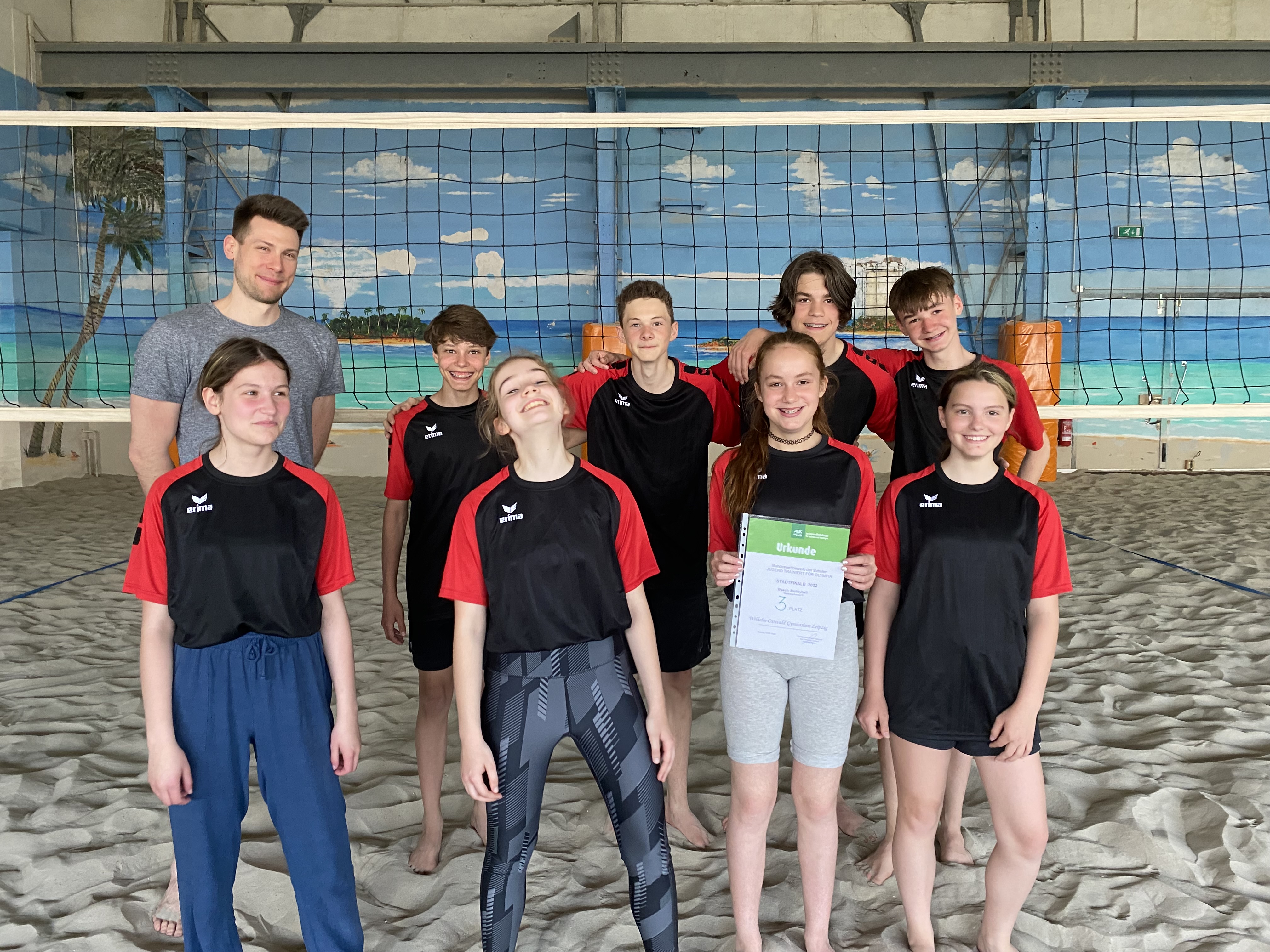 In den letzten Wochen fanden im Beachvolleyball die Bezirks- und Regionalrunden des Wettbewerbs „Jugend trainiert für Olympia“ statt. Das Ostwaldgymnasium wurde dabei in zwei verschiedenen Altersklassen jeweils von vier Mädchen und vier Jungen vertreten. Dabei bestand ein Spiel immer aus 3 Teilen: einem Mixed-Spiel, einem Mädchenspiel und einem Jungenspiel. Welche Schule dabei mehr dieser Teilspiele gewinnen konnte, war der Sieger des Duells. Alle Spielrunden wurden im NO LIMIT Leipzig ausgetragen.