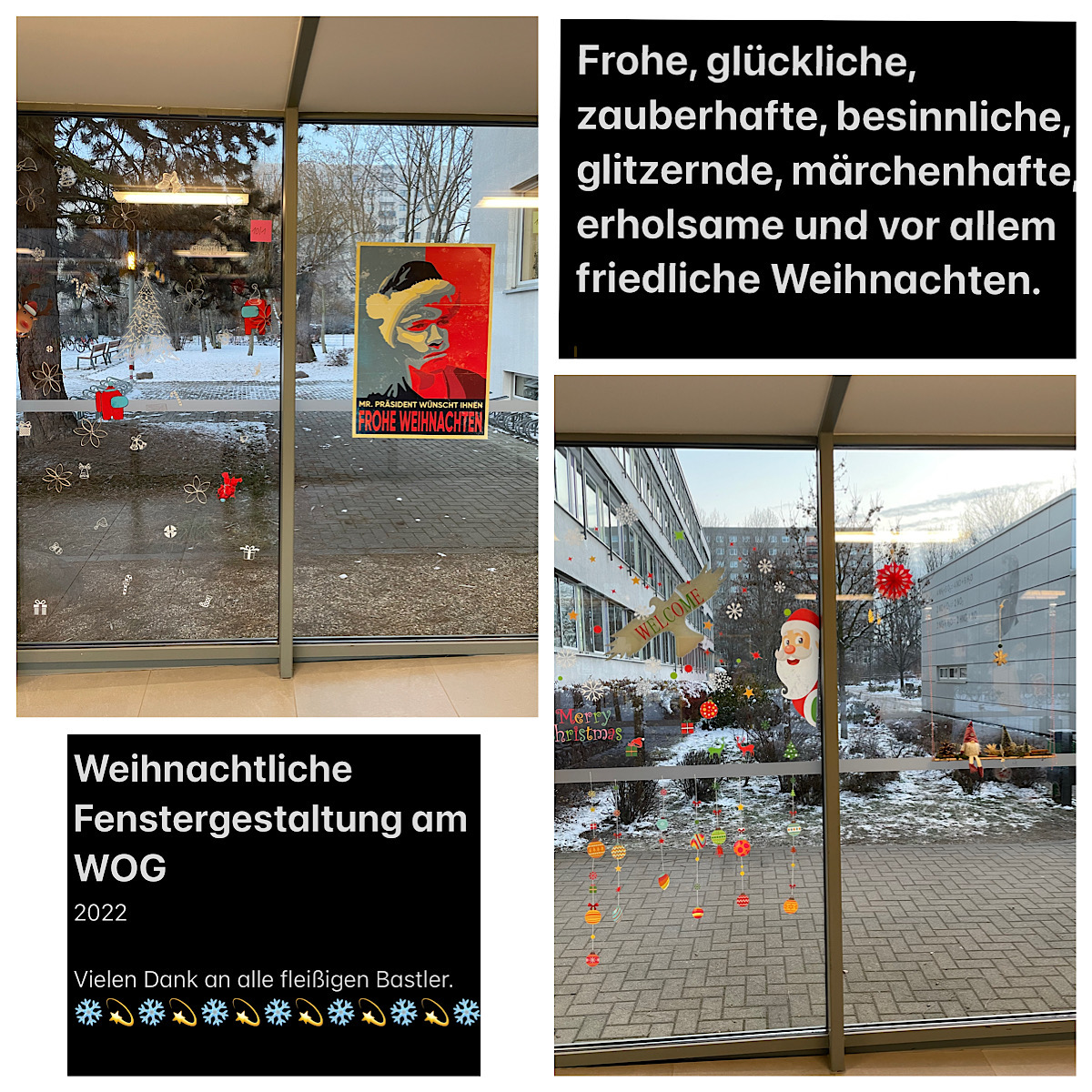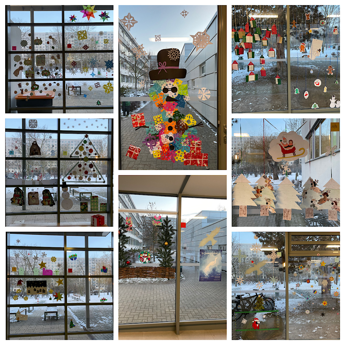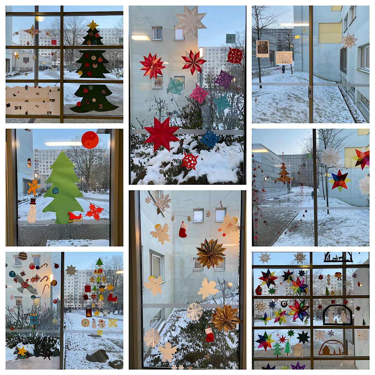 Dieses Jahr hatten alle Klassen und Tutorien die Aufgabe ein Fester weihnachtlich zu schmücken.