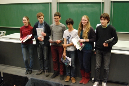 Marina (als einziges Mädchen, das sich zutraute mitzufahren), Jonas und Luca belegten gute Plätze im Mittelfeld der Teilnehmer. Die Teilnehmer mit den Plätzen 1 bis 6 der Klassenstufen 9 und 10 treten dann im Juni gegen die erfolgreichen Schüler der Länder Thüringen und Sachsen-Anhalt an.