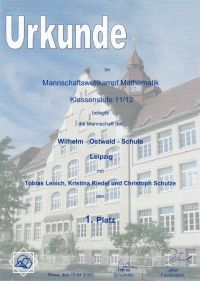Die WOG-Mannschaft Tobias Lenich, Kristina Riedel und Christoph Schulze (alle Jahrgang 11) setzten sich in Riesa mit voller Punktzahl sensationell gegenüber 12 anderen Spezi-Teams* durch. Team-Betreuer H. Lohmann zollte den drei „Spitzensportlern“ bereits großes Lob !
