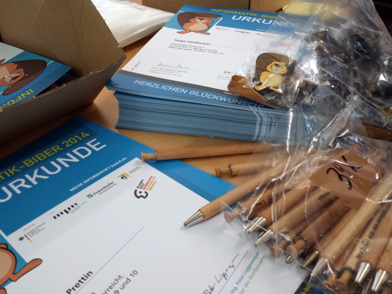 Am letzten Schultag vor den Ferien erhalten die Teilnehmer am Biber-Wettbewerb Preise und Urkunden aus der Hand der KlassenleiterInnen. Die Namen der Preisträger könnt ihr in diesem Artikel [klick] nachlesen.