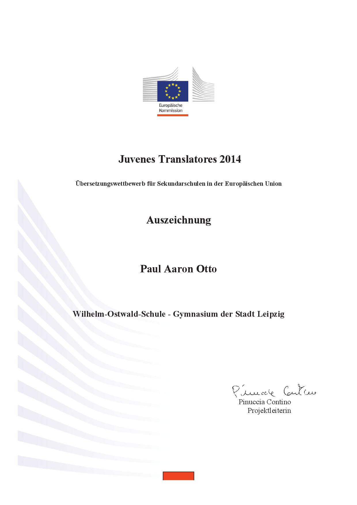 Im November 2014 nahmen ausgewählte Schüler unserer Schule zum ersten Mal am internationalen Übersetzungswettbewerb der Europäischen Kommission teil.