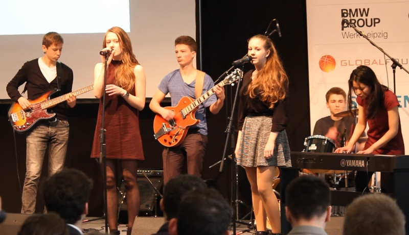 Übrigens hatten sechs weitere SchülerInnen eine Bewährungsprobe beim Landeswettbewerb im BMW-Werk. Die Schulband bestritt einen großen Teil des Kulturprogamms - mit Bravour.