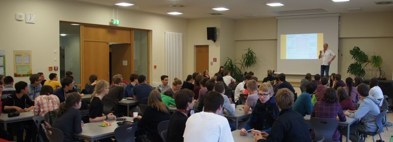 32 / 48 / das waren die Teilnehmerzahlen 2013 und 2014. Heuer sind dem Ruf der Universität Toronto 62 Ostwaldianer aus den Klassenstufen 10 bis 12 gefolgt und haben sich den 50 Multiple-Choice-Aufgaben des 21. Biology Competition gestellt. Der Klausurraum Mensa stößt langsam aber sicher an seine Kapazitätsgrenzen. Die Aufgaben hatten das gewohnt hohe Niveau und sind mit den Qualifikationsrunden der internationalen Biologieolympiade vergleichbar. Respekt unseren diesjährigen Abiturienten, die nach überstandenem Deutschabitur in den Vormittagsstunden, am Abend erneut die „Schulbank“ drückten. Der Startschuss des Wettbewerbs ist im unteren Foto dokumentiert.