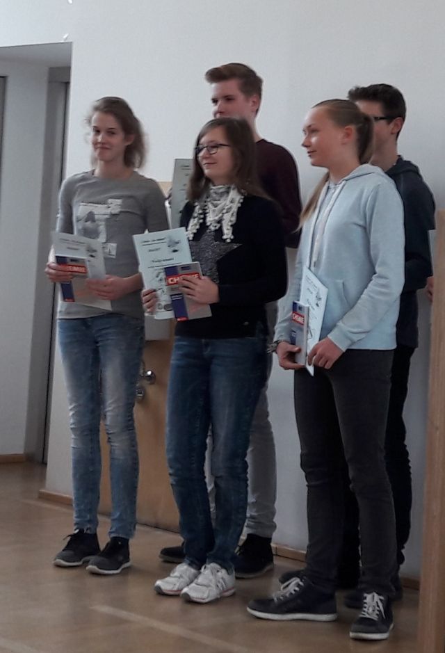 Wir gratulieren Marvin Lamprecht (8/1) zum 2. Platz und Svenja Schmidt (8/2) zum 5. Platz in der Klassenstufe 8. David Rochmann (Platz 8), Lisa Steiniger (Platz 9) sowie Clemens Ebert und Luca Pohl (beide 11.) belegten ebenfalls gute Plätze.