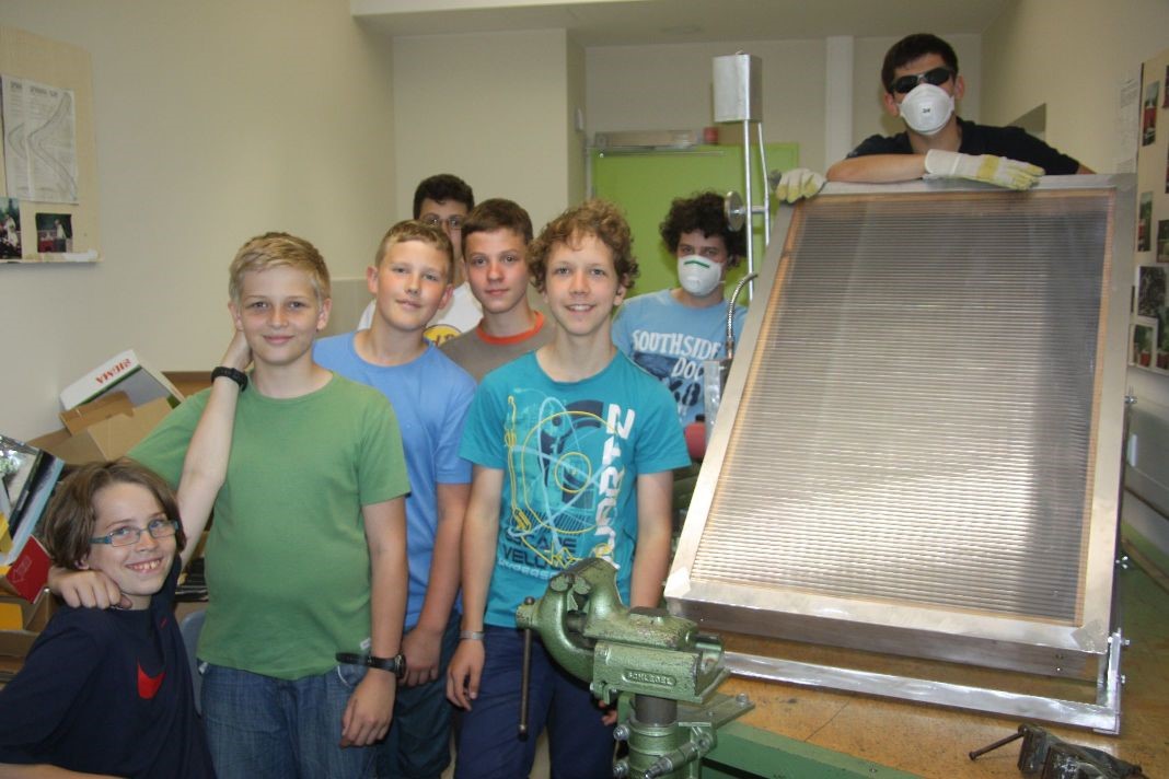 - Experimente mit Solarkollektor, Photovoltaikmodul, Funktionsmodell eines Solarkollektors (gebaut im WOG 2013) und Solar-Parabolspiegel (montiert im WOG 2013),